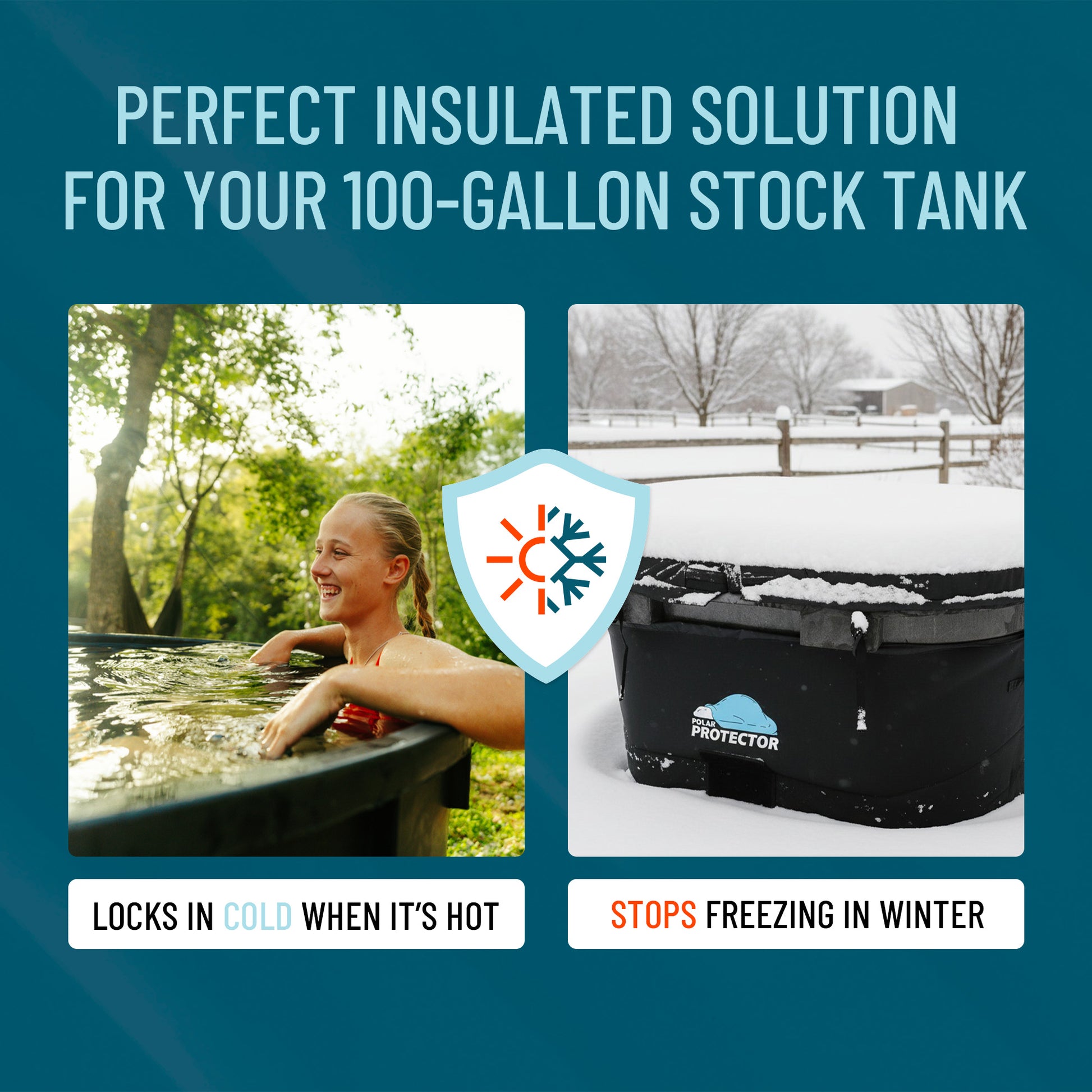 - Keep Your Stock Tank Insulated and Sweat Free: Our 5mm thick Neoprene Slip is custom-designed to fit your 100-gallon oval plastic foam stock tank, featuring handles on each side, a buckle for tightening, and a drawstring for added security, ensuring that your stock tank stays cold or warm. Will prevent ice buildup in near freezing temperatures OR keep your tank cooler in warmer temperatures. 20 Inches Tall. 23 Inches Wide. 39 Inches Long **Patent Pending**